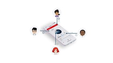 Illustration med et skærmbillede på en mobiltelefon og en visualisering af, hvordan forskellige roller spiller ind i det.