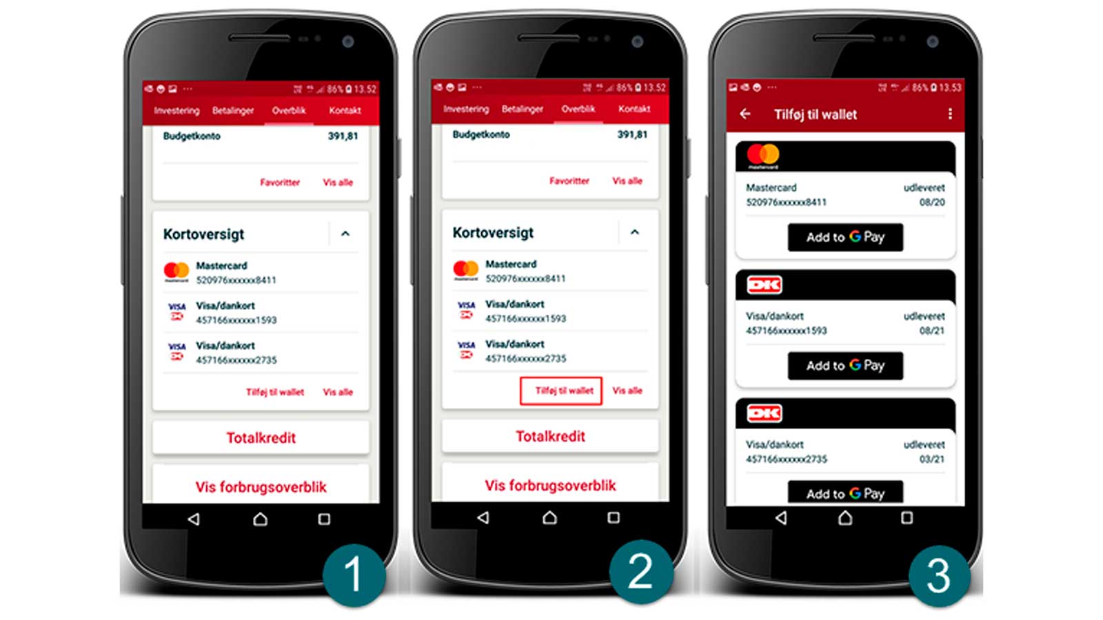 Nu kan du lægge dit kort i Google Wallet direkte fra MobilBanken.