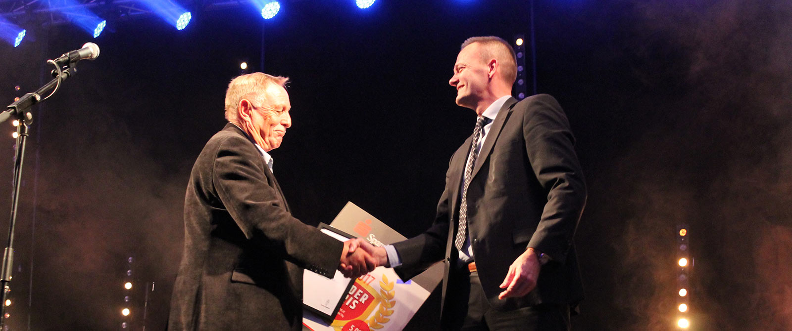 Billedet er fra Thy Awards 2017, hvor årets lederprismodtager var FC Thy træner Bent Andersen.